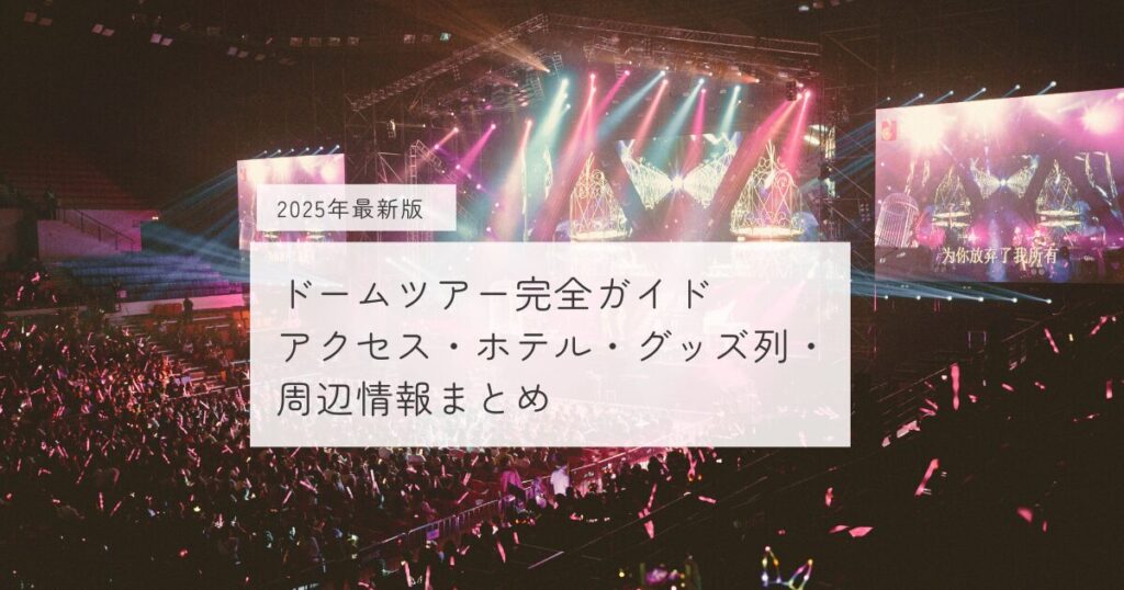 【2025年最新版】ドームツアー完全ガイド|アクセス・ホテル・グッズ列・周辺情報まとめ【東京・大阪・名古屋・福岡・札幌・埼玉】